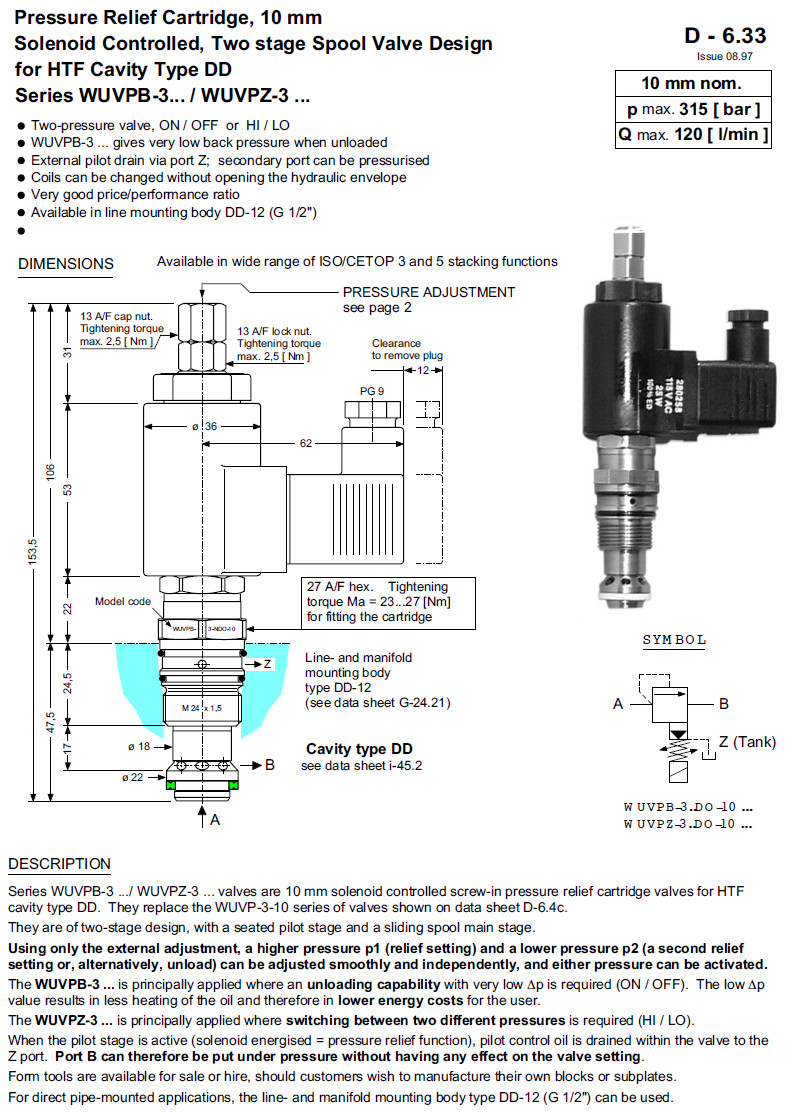 WUVPB-3MDO-10-1,WUVPB-3LDO-10-1,WUVPB-3NDO-10-1,Bucher电磁控制压力安全阀