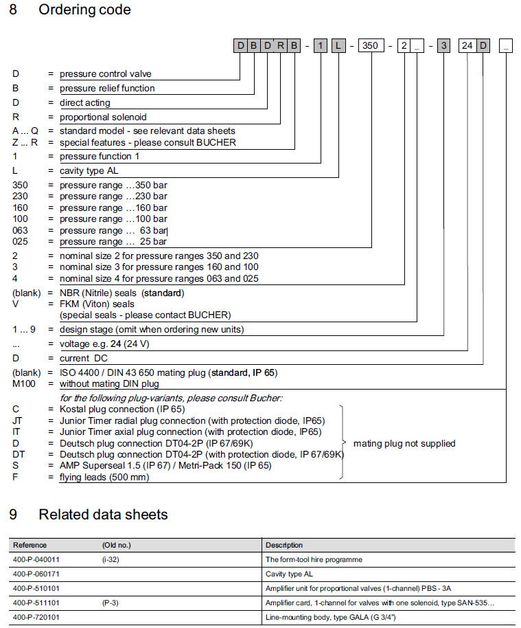 DBDRB-1L-350-2-3,DBDRB-1L-025-4-3,DBDRB-1L-100-3-3,DBDRB-1L-230-2-3,Bucher压力控制阀