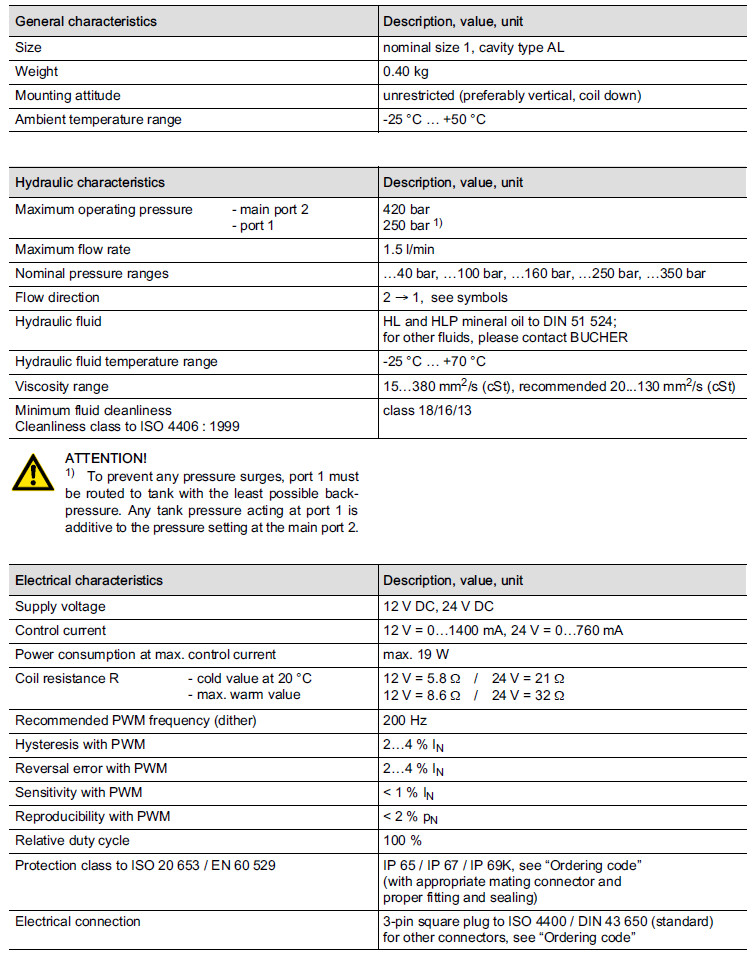 DVSA-1LG-100-1-1,DVSA-1LG-160-1-1,DVSA-1LG-250-1-1,DVSA-1LG-350-1-1,Bucher泄压阀