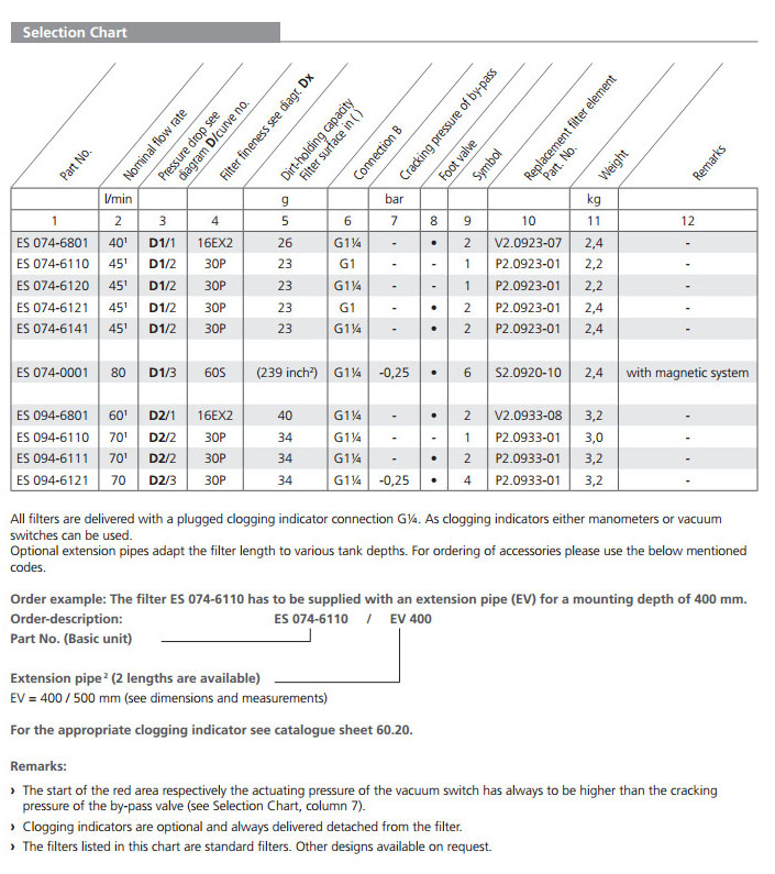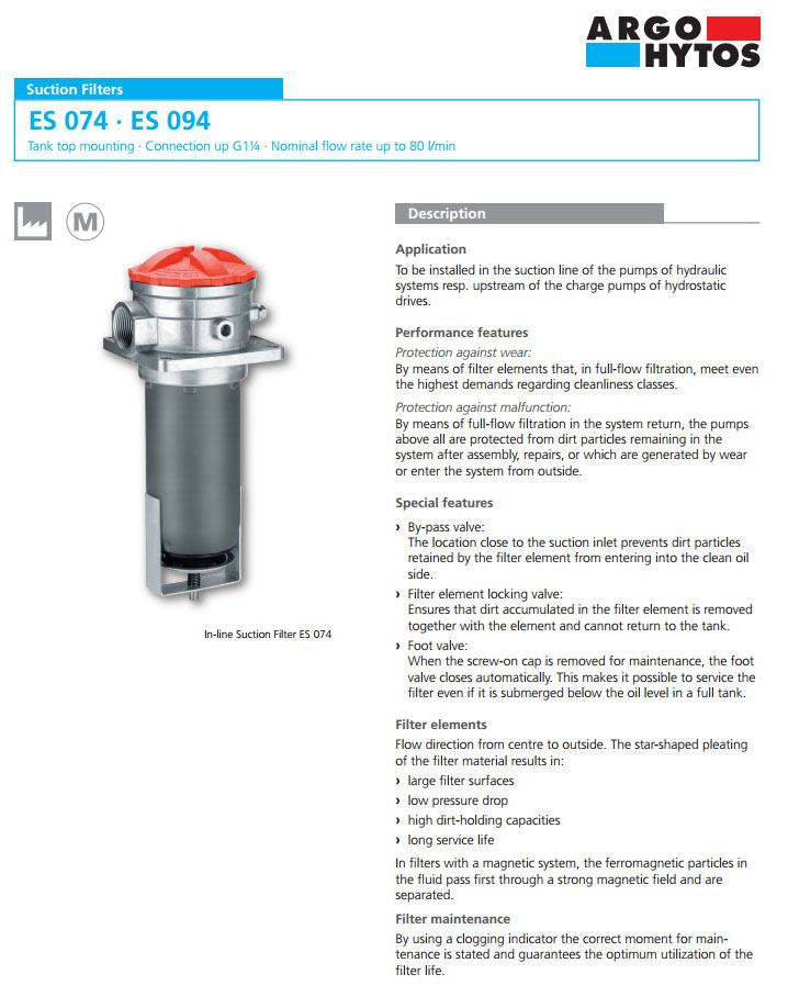 ES074,ES094,ARGO吸油过滤器