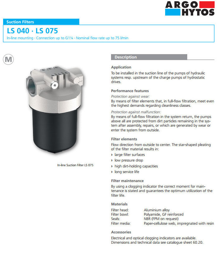 LS040-152,LS075-152,ARGO吸油过滤器