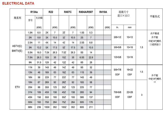 ASTVE1.5N,ASTVE2N,ASTVE2.5N,BWTVE3N,BWTVE5.5N,ETV-31N,ETV-45N,ETV-55N,热力膨胀阀