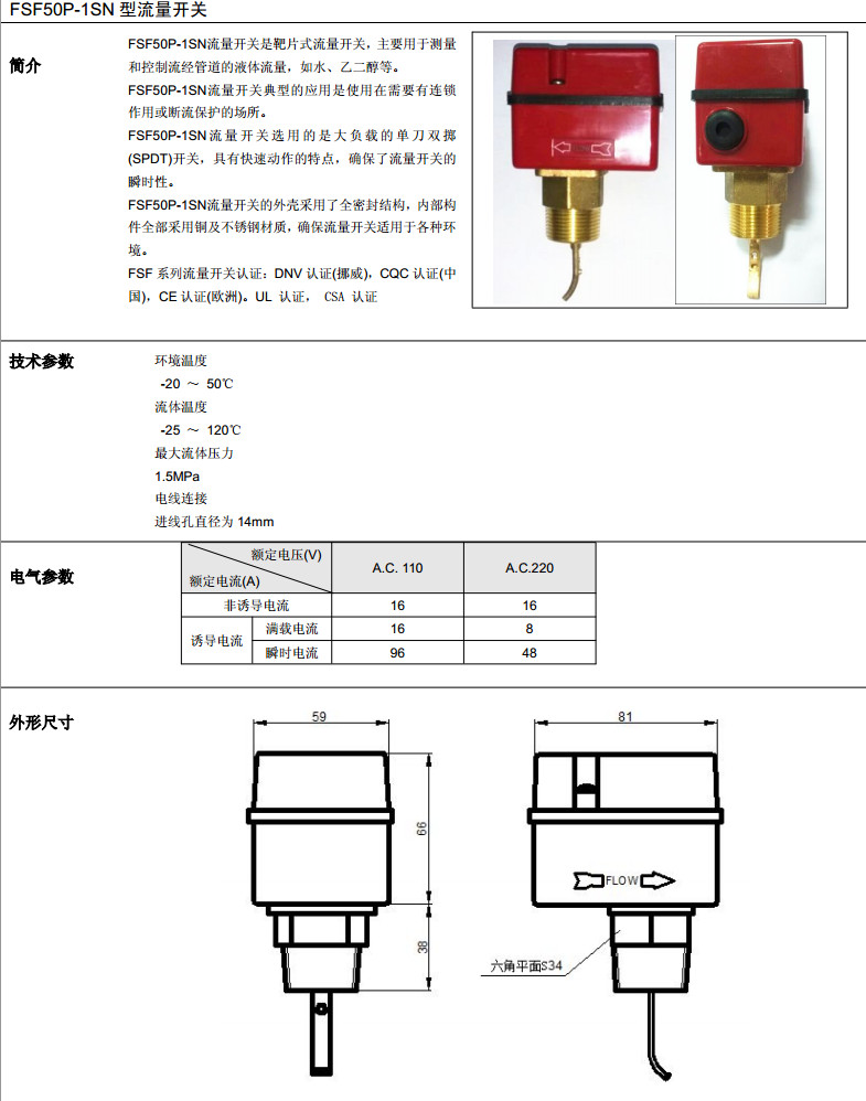 FSF50P-1SN,流量开关