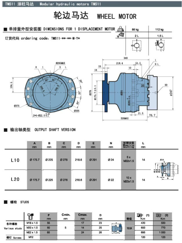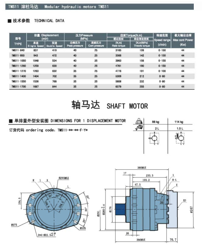 TMS11-840,TMS11-950,TMS11-1050,TMS11-1260,TMS11-1270,TMS11-1400,TMS11-1550,TMS11-1770,滚柱马达