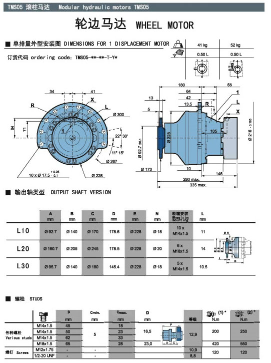 TMS05-380,TMS05-470,TMS05-520,TMS05-560,TMS05-620,TMS05-680,TMS05-780,TMS05-820,滚柱马达