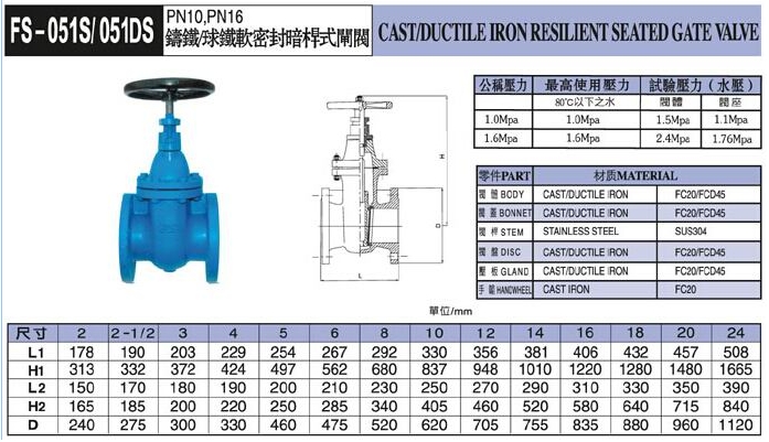 FS-051S,FS-051DS,软密封暗杆式闸阀