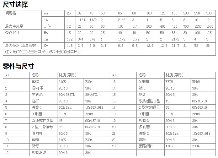 其它旁路尺寸可按要求制作;最大的旁路流量取决于最大的Kv值。