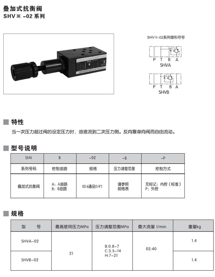 SHVA-02,SHVB-02,SHVA-02-B-P,SHVB-02-C-P,SHVA-02-H,SHVB-02-B,叠加式抗衡阀