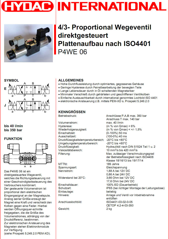 P4WE06E04D01-24PG/V,P4WE06E08D01-24PG/V,P4WE06E16D01-24PG/V,P4WE06E26D01-24PG/V,HYDAC比例换向阀