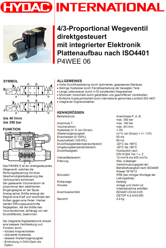 P4WEE06E04D01-24PGE0/V,P4WEE06J08D01-24PGE0/V,P4WEE06E16D01-24PGE1/V,HYDAC比例换向阀