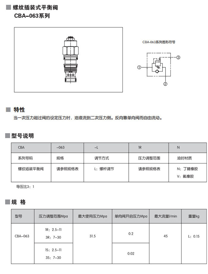 CBA-063-L1RN,CBA-063-L3RN,CBA-063-L1SN,CBA-063-L3SN,CBA-063-L1RV,CBA-063-L3RV,螺纹插装式平衡阀