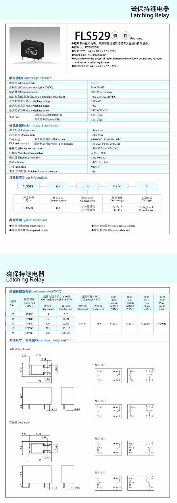 FLS529-10A,磁保持继电器