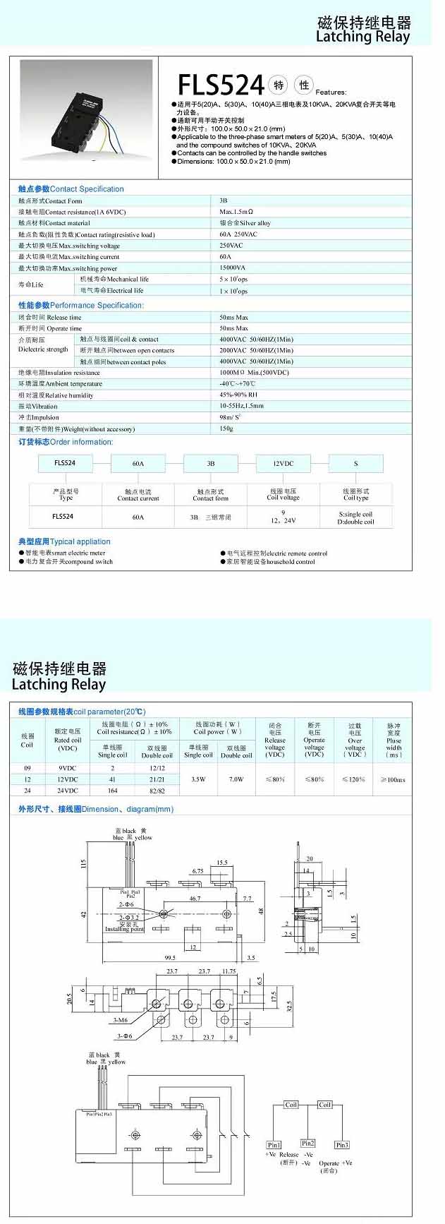 FLS524-60A,磁保持继电器
