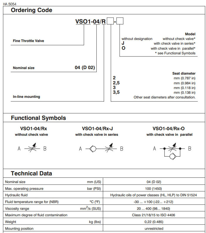 VSO1-04/R2,VSO1-04/R2.5,VSO1-04/R3,VSO1-04/R3.5,ARGO精细节流阀