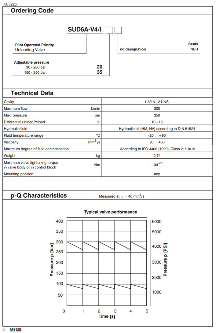 SUD6A-V4/I20,SUD6A-V4/I35,ARGO先导优先卸荷阀