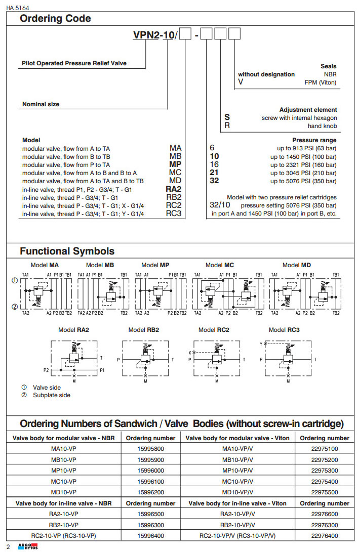 VPN2-10/MA-6,VPN2-10/MB-6,VPN2-10/MP-6,VPN2-10/MC-6,VPN2-10/MD-6,VPN2-10/RA2-6,ARGO先导式泄压阀