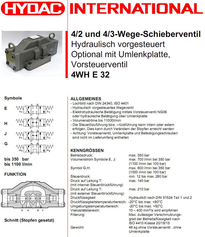 4WHE32ES01/V,4WHE32JS01/V,4WHE32GS01/V,4WHE32HS01/V,HYDAC 4/3方向控制阀