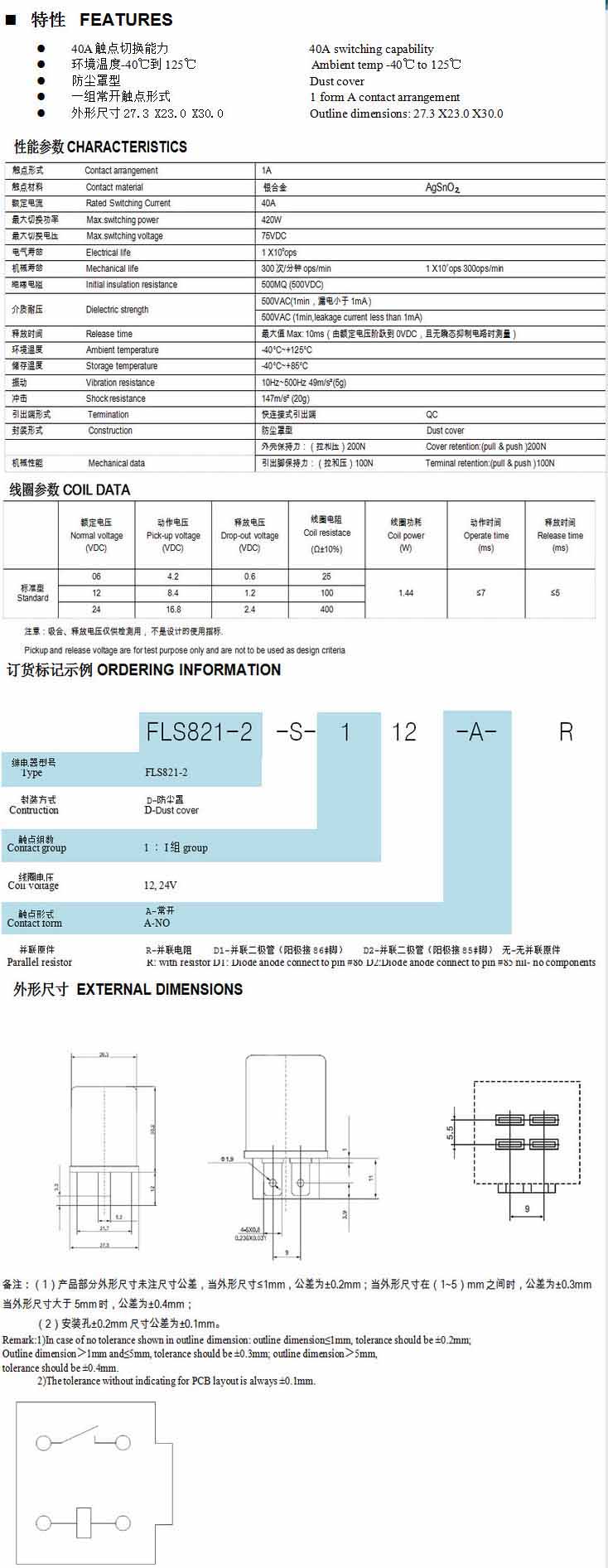 FLS821-2,汽车继电器
