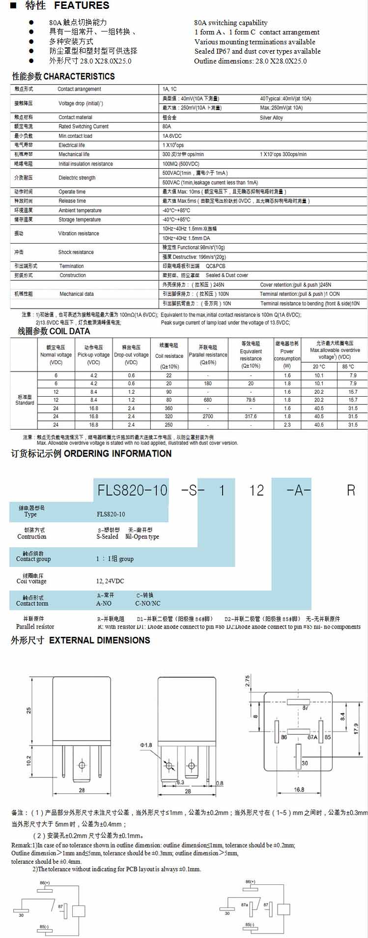 FLS820-10,汽车继电器