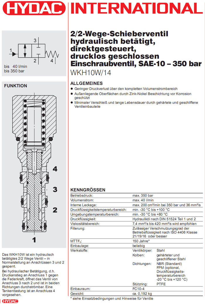WKH10W/14-01-C-N-070,WKH10W/14-01-C-N-090,WKH10W/14-01-C-N-130,WKH10W/14-01-C-N-180,HYDAC直动式2/2方向阀