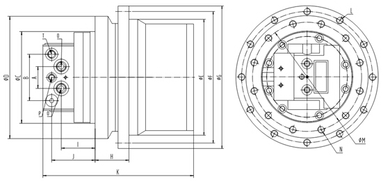 本产品为马达与减速机一体的行走装置。由集成于减速机内部的双排量轴向柱塞马达、行走减速器组成。马达内置安全阀、防反转阀、停车制动装置及高低二档转换装置,它的特点是:传动比范围大、结构紧凑、工作效率高、可靠性强、体积小、运动平稳、噪音低等,同时具有多级安全保护、使用寿命长等优点。适用于液压履带驱动行走装置。