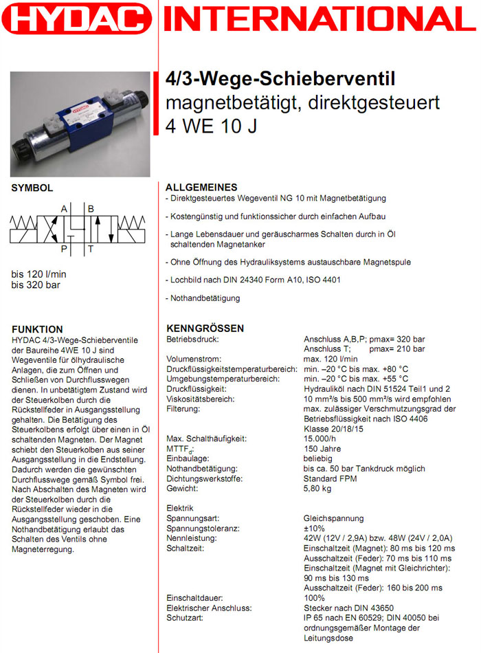 4WE10JS01-12DG/V,4WE10JS01-24DG/V,HYDAC电磁4/3方向滑阀