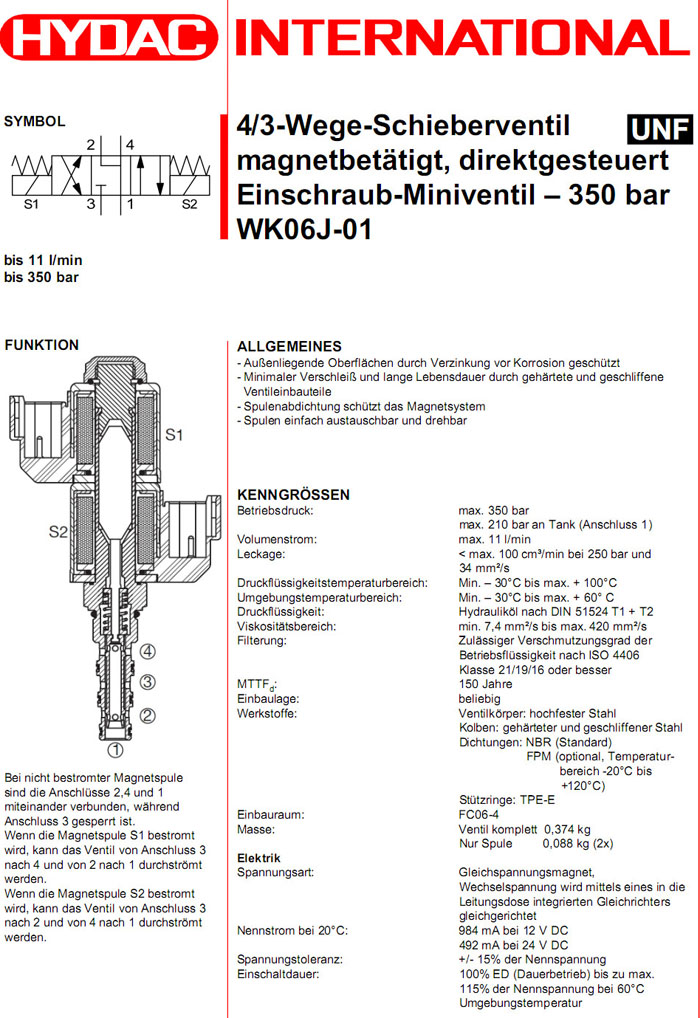 WK06J-01-C-N-0,WK06J-01M-C-N-0,WK06J-01A-C-N-0,HYDAC电磁4/3方向滑阀