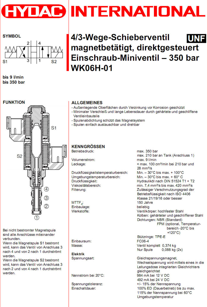 WK06H-01-C-N-0,WK06H-01M-C-N-0,WK06H-01A-C-N-0,HYDAC电磁4/3方向滑阀
